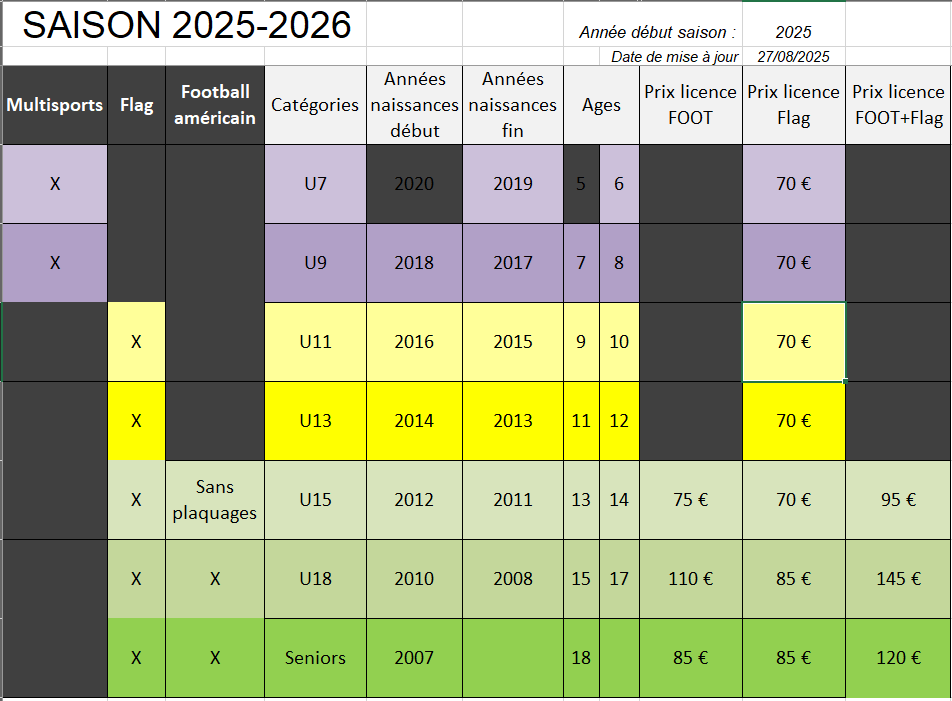 Foot américain 14h00 à 18h00